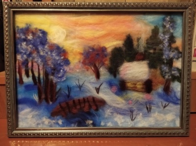 Картина шерстью на зимнюю тему.